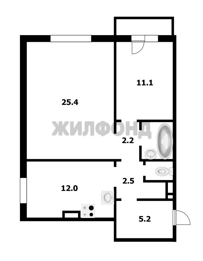 - Площадь кухни: 12.1 м2