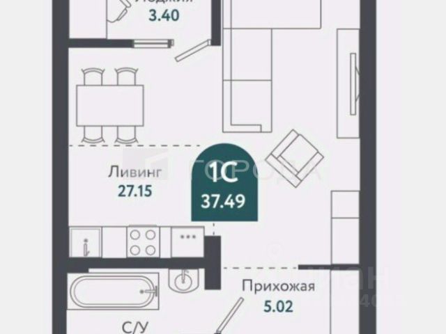 - Общая площадь: 40.8 м2