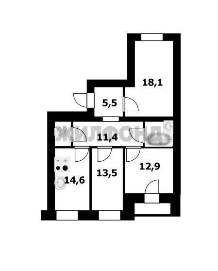 - Площадь кухни: 14.6 м2