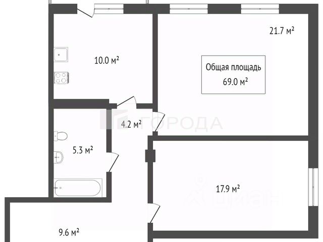 - Общая площадь 56 м2