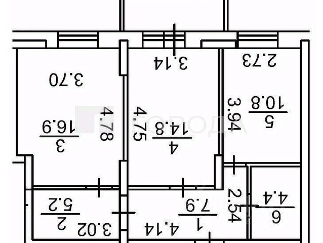 - Общая площадь 64.3 м2