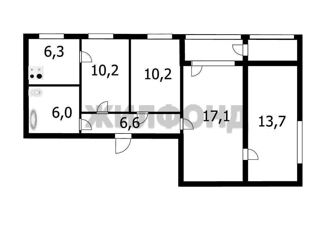- Площадь кухни: 6.3 м2