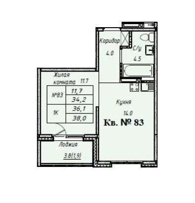 - Общая площадь: 34.2 м2