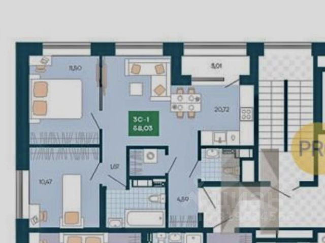 - Общая площадь 57.6 м2