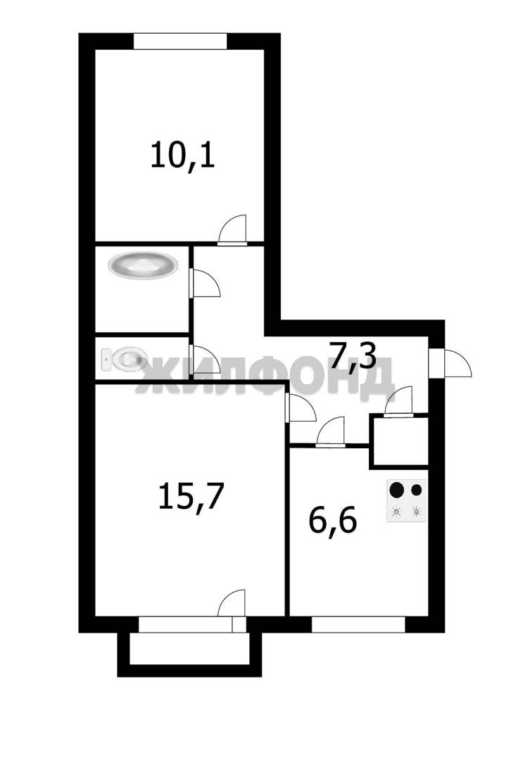 - Общая площадь: 43.9 м2