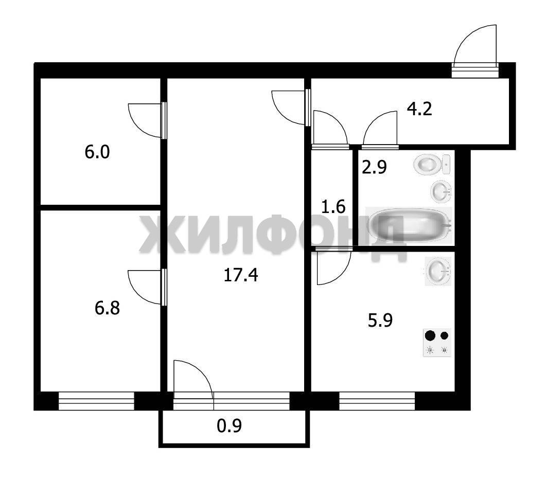 - Площадь кухни: 5.9 м2