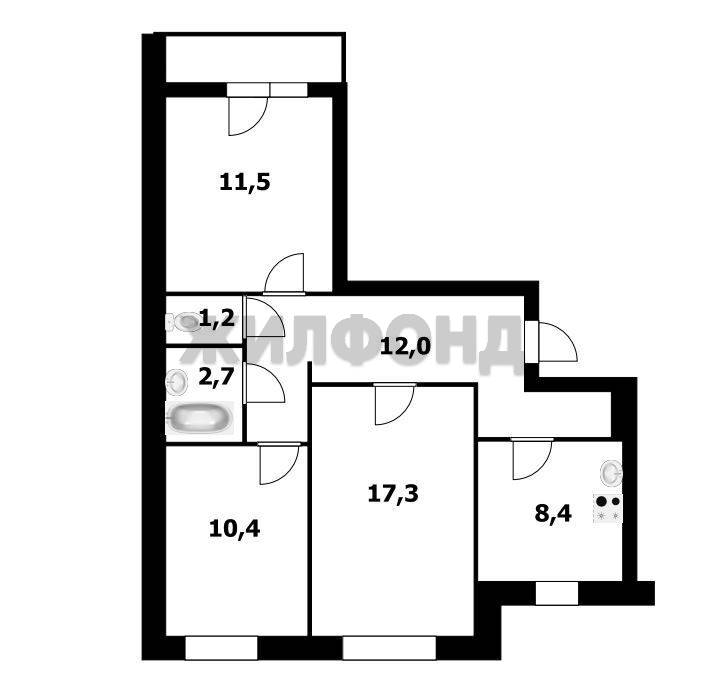 - Общая площадь: 63.5 м2