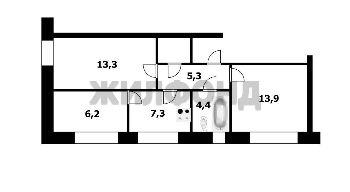 - Общая площадь: 52.9 м2