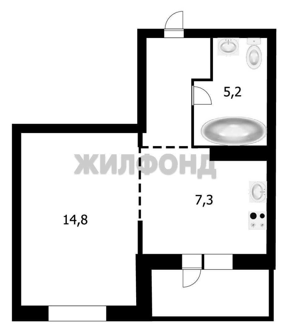 - Жилая площадь 15 м2
