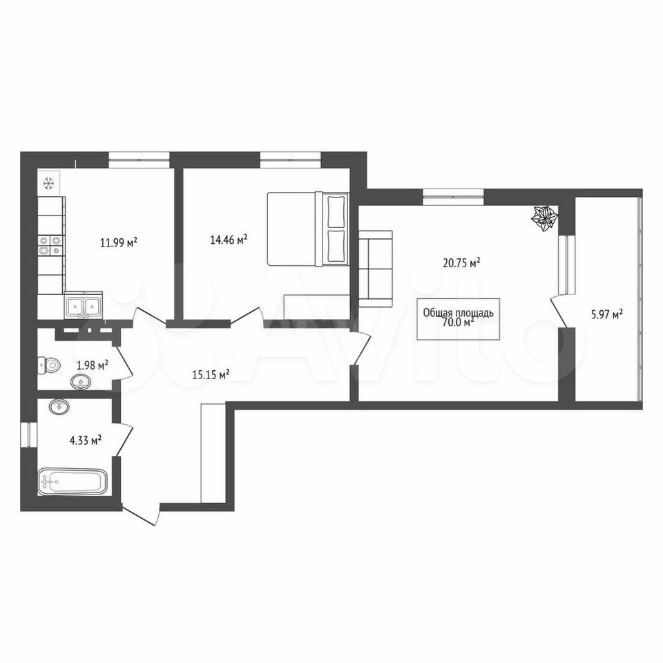 - Общая площадь: 70 м2