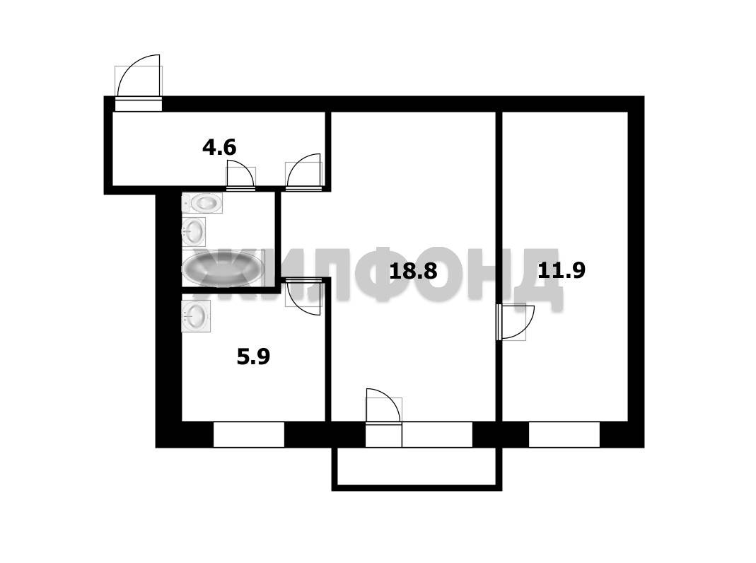 - Общая площадь: 44.9 м2