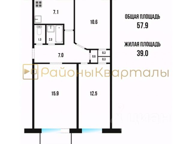 - Общая площадь: 57.9 м2