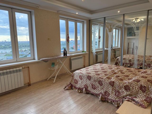 Предлагается от собственника отличная видовая евротрешка на 18 этаже 23 этажного дома площадью 75,1 кв.м., высота потолков 2,8 м. В квартире частично остается мебель и бытовая техника. Планировка - две спальни 17,6 и 12,4 кв.м. , а также студия со встроенной кухней - 25,1 кв.м., а с учетом коридора 9,7 кв.м. примыкающего к студии, фактически 35 кв.м. свободного пространства. В квартире большая лоджия - 7,9 кв.м. Вид из окон - центр города и на реку Обь (новый мост) фото прилагаются. Видовые характеристики квартиры позволяют, не выходя из дома, любоваться красотами города и салютами в праздничные дни. В доме три лифта, есть подземная и наземная парковка. Квартира расположена в центре города, т.е. со всей необходимой для жизни инфраструктурой (магазины, школа, детский сад и пр.) Квартира без обременений. Никто не прописан, быстрый выход на сделку. Ипотека - приветствуется. По цене - торг и скидка.