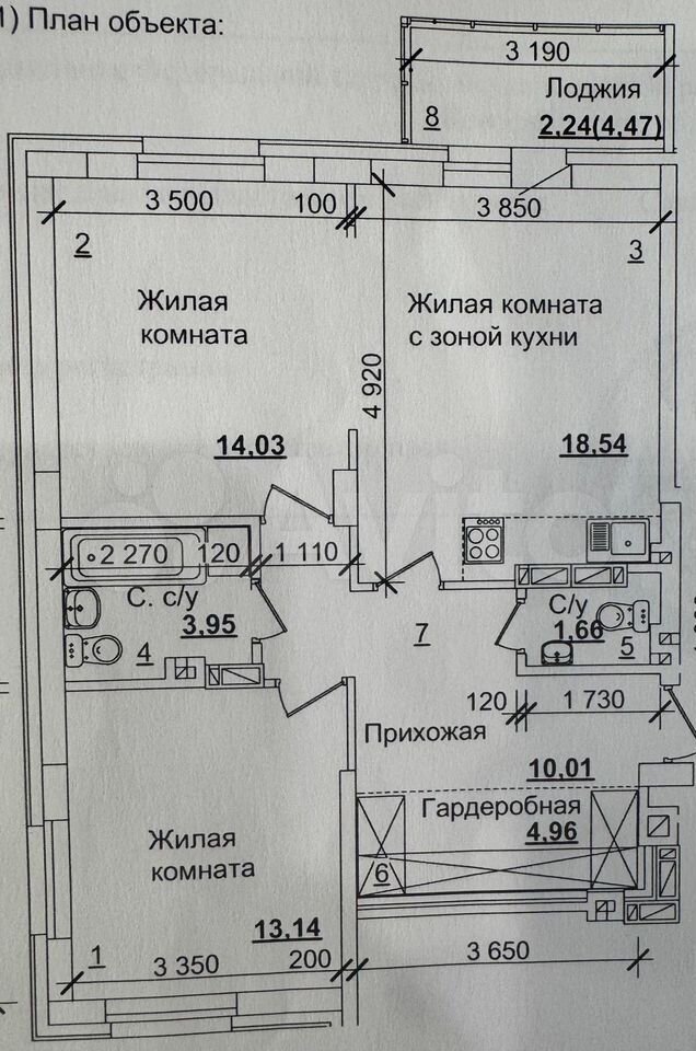- Общая площадь: 65.9 м2