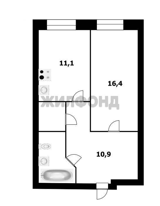 - Общая площадь: 45.5 м2