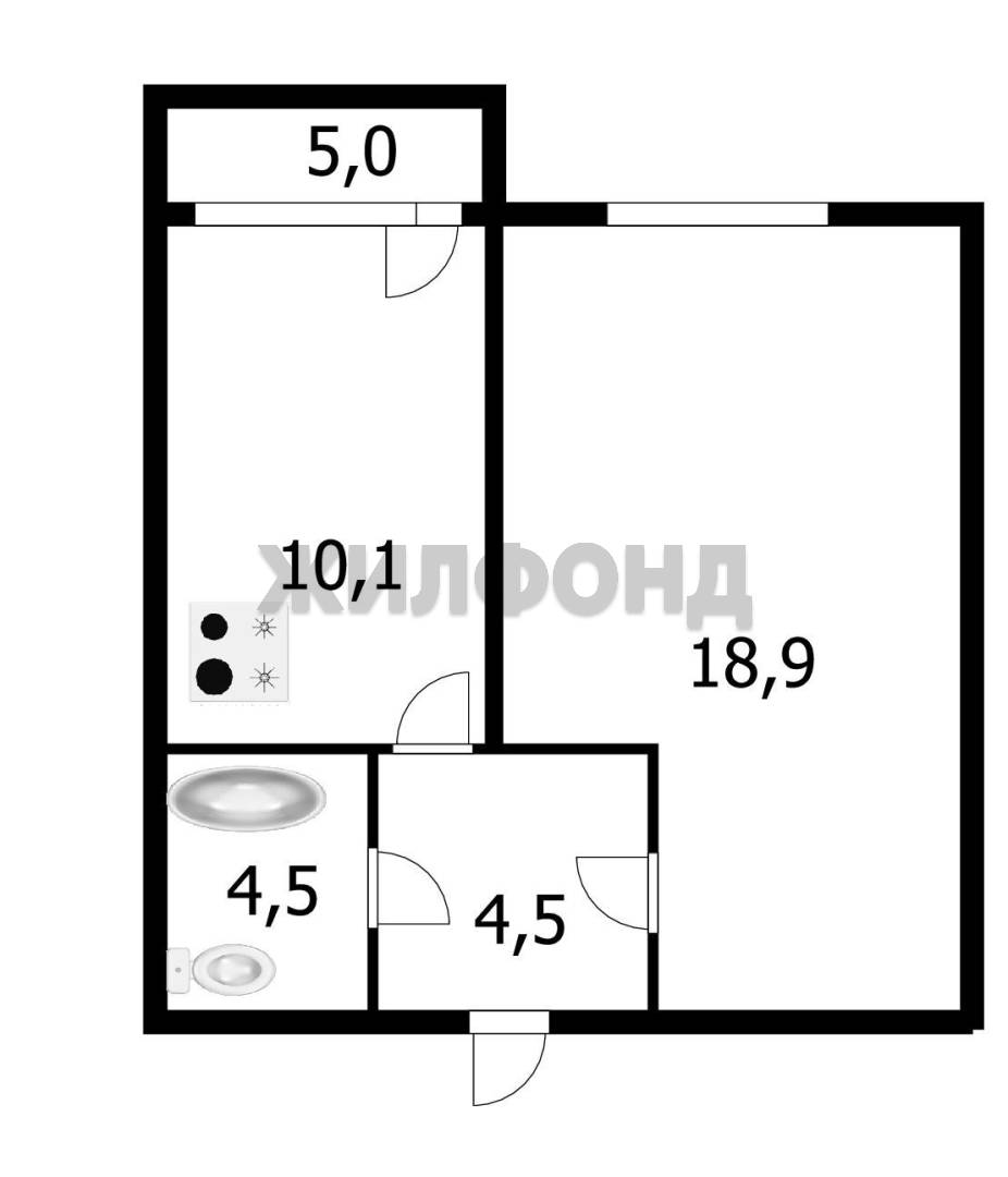 - Жилая площадь: 18.9 м2