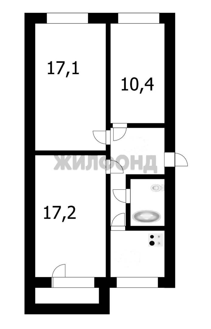 - Жилая площадь 44.6 м2