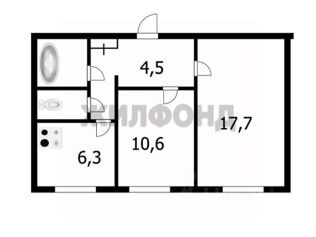 - Общая площадь: 46.3 м2