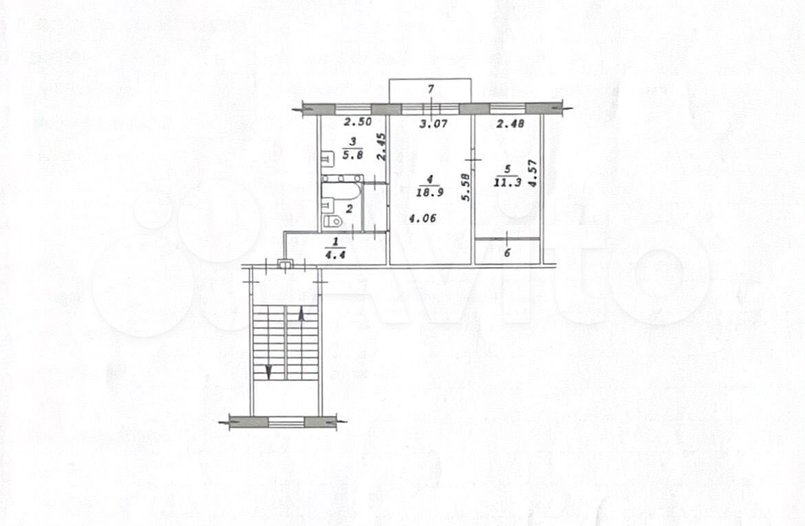 - Общая площадь 45.6 м2