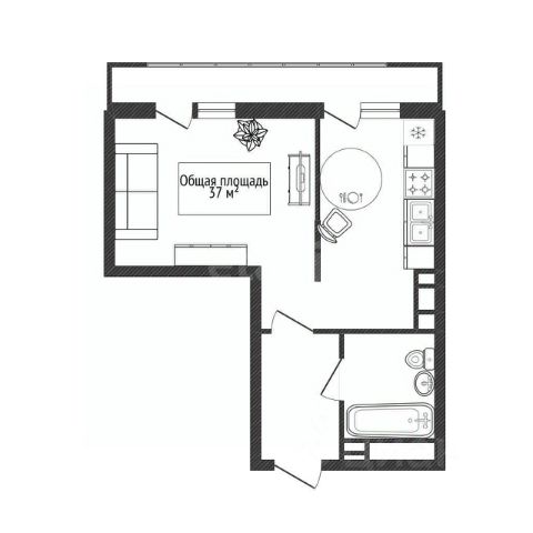 - Общая площадь 37 м2