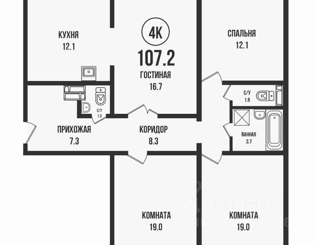 - Общая площадь: 107.2 м2