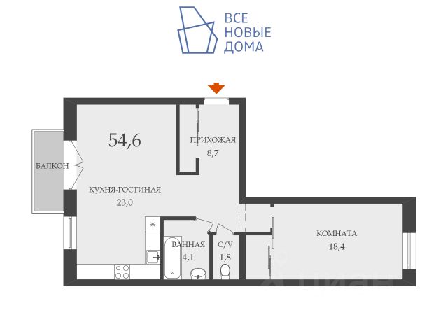 - Общая площадь: 55 м2