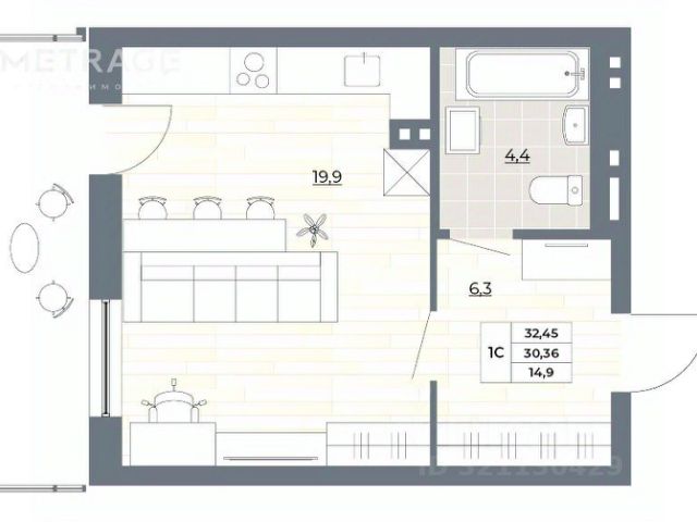 - Общая площадь: 32.5 м2