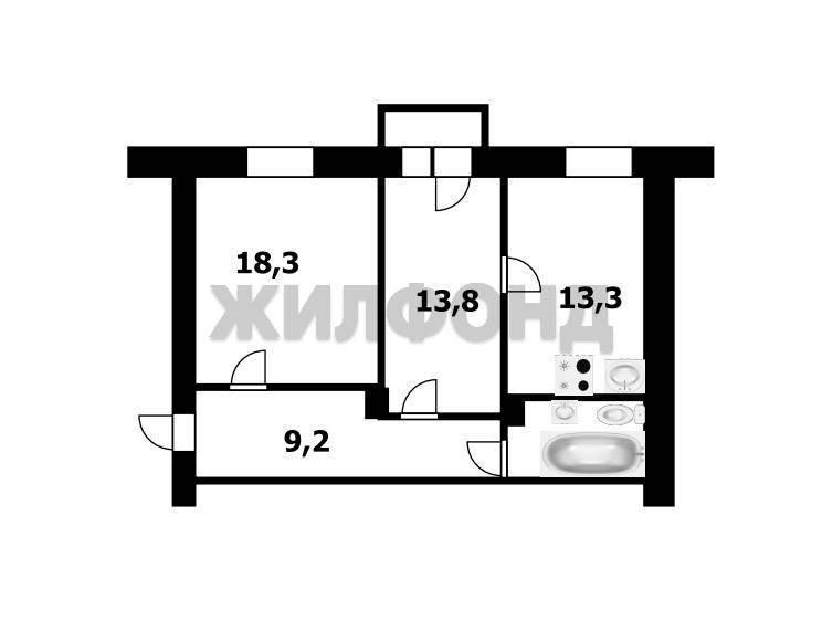 - Общая площадь: 61 м2