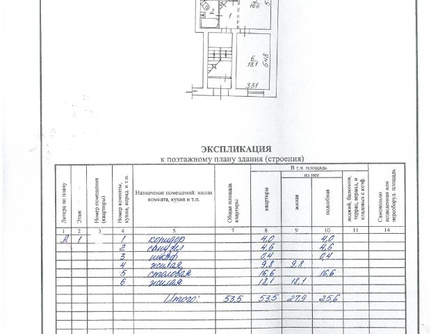 - Общая площадь: 53.5 м2