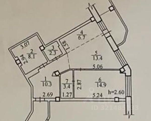 - Общая площадь: 59.1 м2