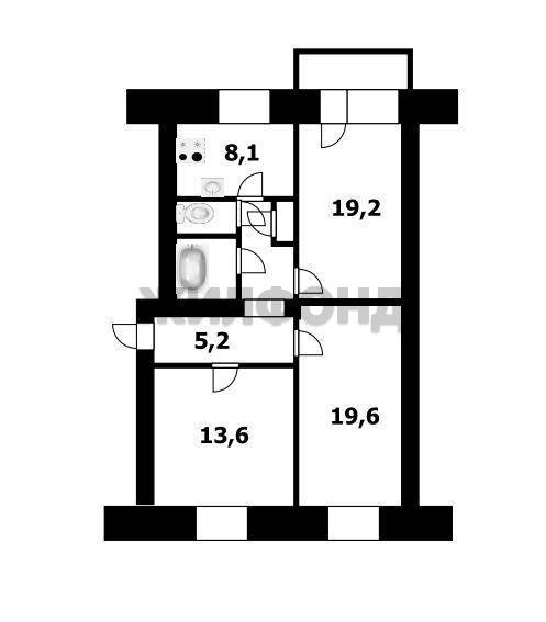 - Жилая площадь 19.6 м2