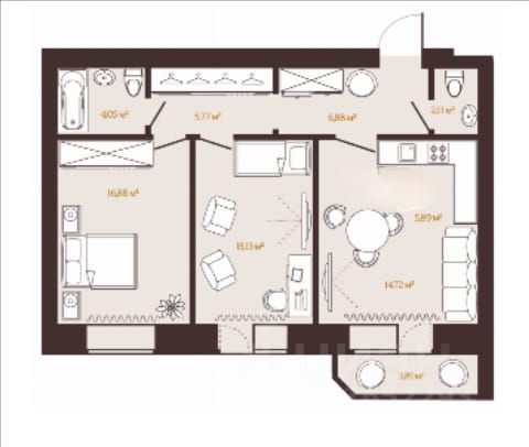 - Общая площадь: 73.1 м2