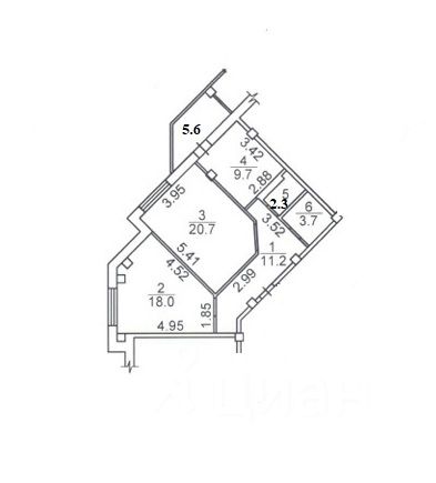 - Общая площадь: 65.6 м2
