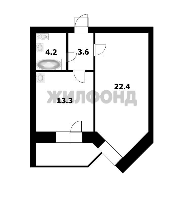 - Жилая площадь: 22.4 м2