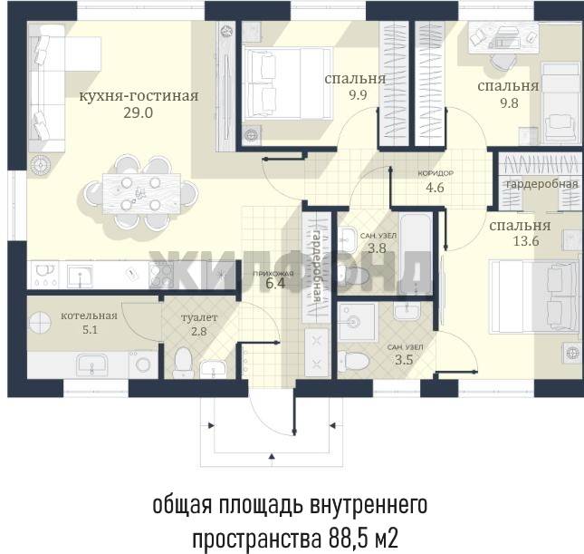 - Жилая площадь 63 м2