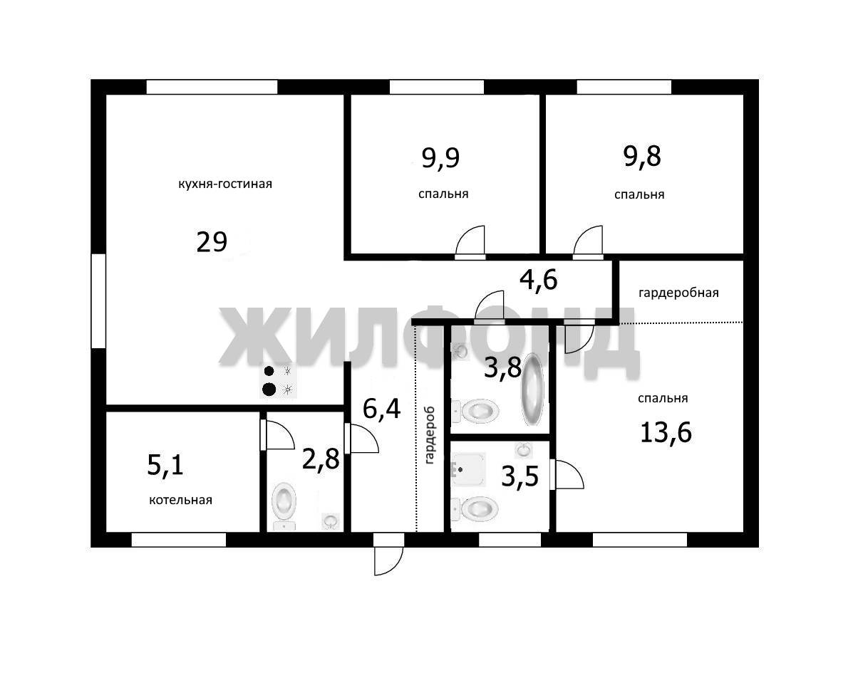 Дом по ул. Гагарина. Общей площадью: 94.30 кв.м. НАДЕЖНЫЙ КИРПИЧНЫЙ ДОМ в коттеджном поселке РЯБИНОВЫЙ С ВИДОМ НА СОБСТВЕННЫЙ ЛЕС! Площадь дома 94,3 м, участок 7,5 соток. Коммуникации заведены: газ, вода, электричество. Подходит под сельскую ипотеку, документы к сделке готовы. Ключевые особенности: ПРОСТОР, КОМФОРТ И СВЕТ: умная планировка - просторная кухня-гостиная 29 м2 (сердце дома) + 3 изолированные комнаты, а также 3 санузла, котельная и гардеробные. - Высокие потолки (3-5 м) и панорамные окна открывают потрясающий вид на ваш лесной участок, наполняя пространство светом, ощущением свободы. Уединение и природа прямо за порогом! ГОТОВНОСТЬ К ПРОЖИВАНИЮ: все коммуникации разведены - электричество, вода, канализация (септик 2х5 м). Полусухая стяжка, стены под финишную отделку. - Получены технические условия на подключение газа (в ноябре 2025). ЭНЕРГОЭФФЕКТИВНОСТЬ И КАЧЕСТВО: фундамент — монолитная плита. Теплый контур: стены в 2 кирпича + 150 мм утеплителя, утепленная кровля (250 мм), теплый пол по всему периметру. Установлен электрокотел, есть разводка под радиаторы. Высококачественная входная дверь с терморазрывом. ГАРАНТИЯ: на дом действует гарантия от застройщика еще 4 года. - УЧАСТОК 7.5 СОТОК (30х25 м): ровный, с забором с двух сторон, на тихой тупиковой улице. Соседние дома уже построены и заселены дружными семьями. РАЗВИТАЯ ИНФРАСТРУКТУРА: Поселок огорожен, с охраняемым въездом и шлагбаумом, широкими асфальтированными дорогами и уличным освещением. Детские и спортивные площадки, парк, магазины. Ближайший детский сад находится в 3км от поселка, школа в 4км. - На въезде в поселок строятся ТЦ и бассейн. В 1 км — Мира Парк с ежедневными развлекательными мероприятиями. УДОБНАЯ ТРАНСПОРТНАЯ ДОСТУПНОСТЬ: организовано движение школьного автобуса в п. Светлый, каждые полчаса из поселка ходит регулярный автобус №289 до площади Калинина (метро Заельцовская). Идеальный дом для спокойной загородной жизни с развитой инфраструктурой! Дом полностью готов к финишной отделке под ваш вкус. Продажа в связи с переездом. Документы проверены юристом и готовы к сделке. Экономьте время, прежде чем ехать на просмотр. Напишите мне хочу видео, и я отправлю вам запись, чтобы вы оценили вид из окон и масштаб помещений, а в дальнейшем познакомились с домом вживую. Возможно, это ваш будущий дом. И только вы решаете, каким он станет. Первый шаг - сделать его своим! Возможен обмен на вашу недвижимость. Возможна продажа в рассрочку. При звонке, пожалуйста, сообщите номер варианта - JV080541101901