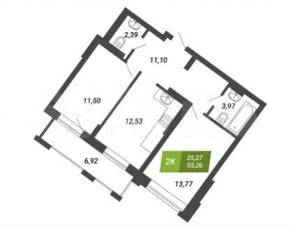 - Общая площадь: 55 м2