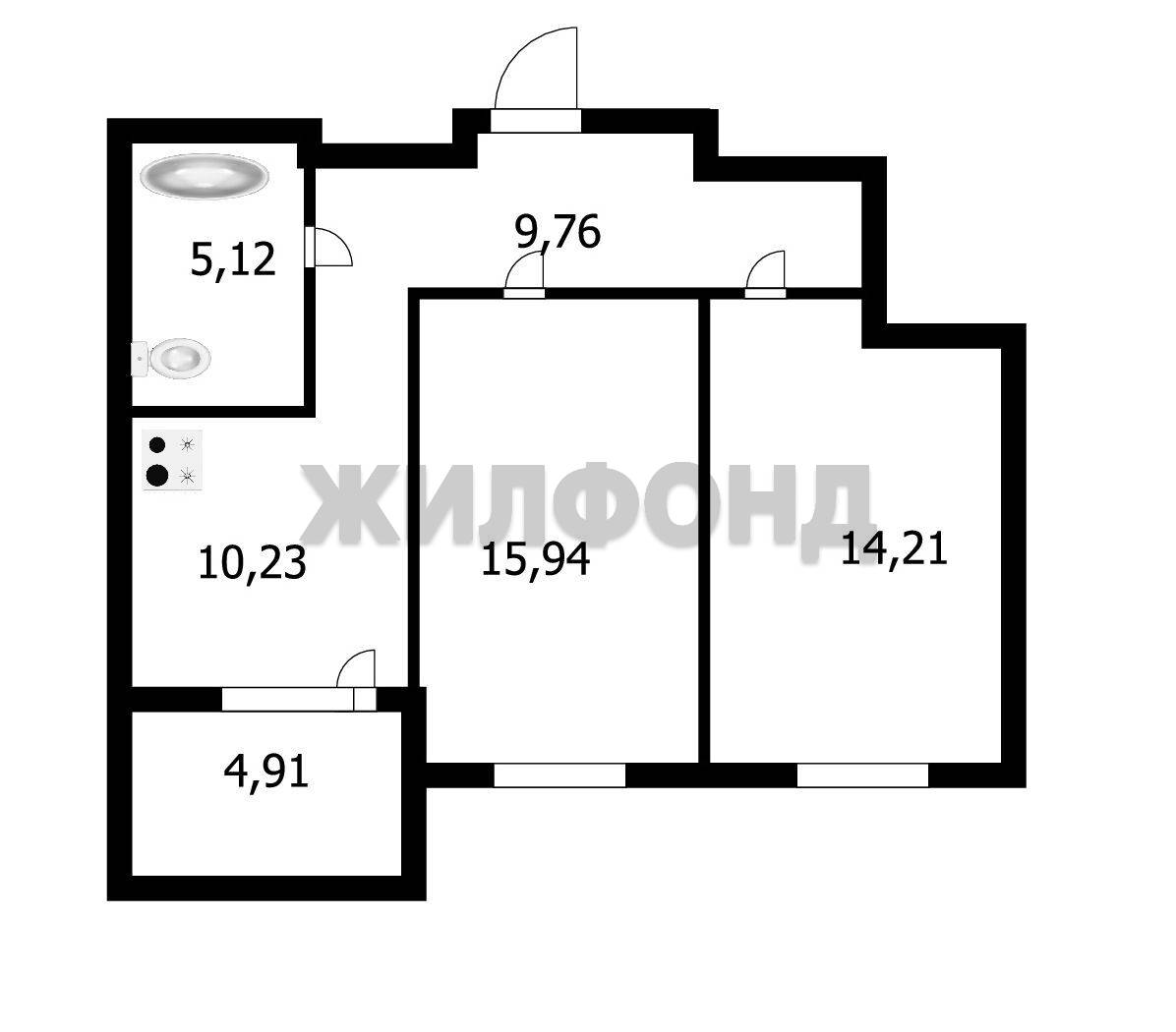 - Общая площадь 54.1 м2
