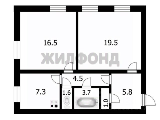 - Общая площадь: 59.9 м2