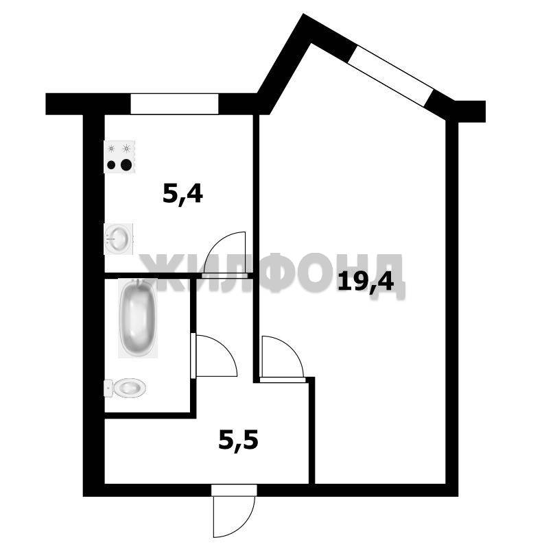 - Жилая площадь 19.5 м2