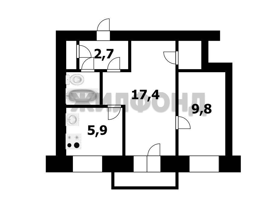 - Жилая площадь 27.2 м2