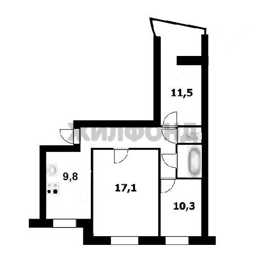 - Площадь кухни: 9.8 м2
