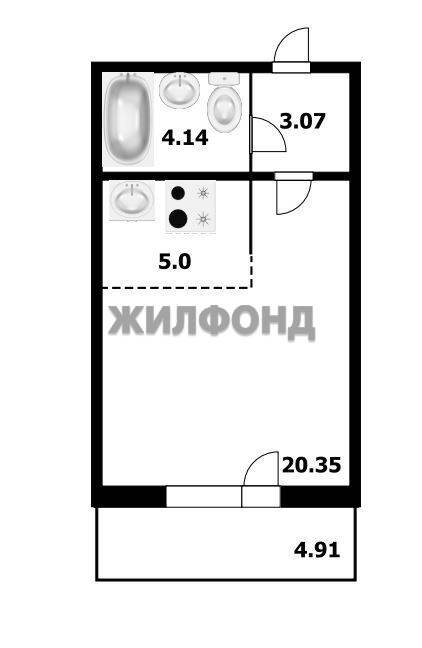 - Общая площадь: 32.7 м2