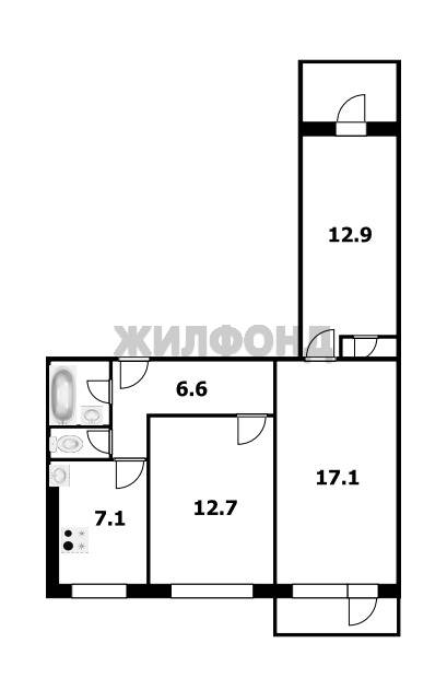 - Жилая площадь 43.4 м2