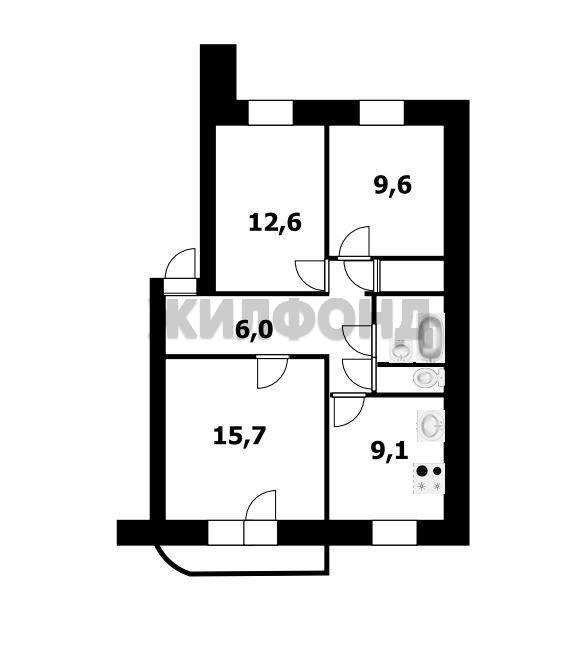 - Площадь кухни: 9.1 м2