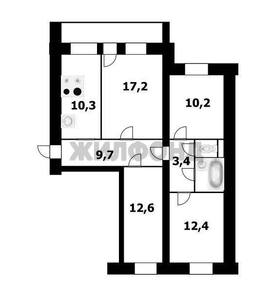 - Жилая площадь: 55 м2
