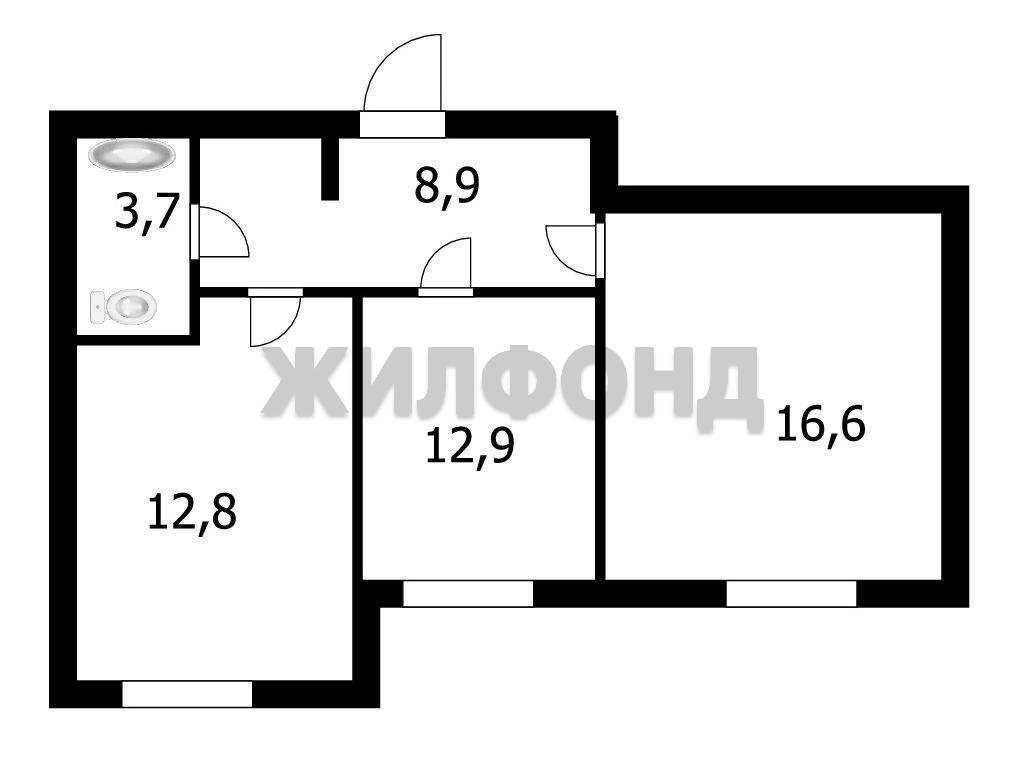 - Общая площадь: 54.9 м2
