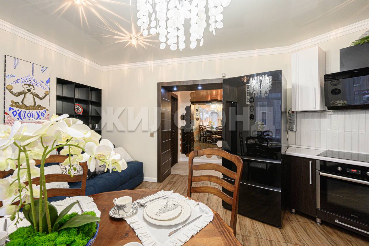 3 комн. квартира по ул. Серафимовича. Общей площадью: 73.00 кв.м. Отличная квартира с новым ремонтом в центре левого берега, в пешей доступности метро Площадь Маркса. Квартира продается ровно в том виде и комплектации как на фото, вплоть до новой посуды. Заходи и живи! Отделка из высококачественных дорогих материалов. Дизайн-проект универсальный в светлых тонах. Цветной декор легко меняется. Недавно сделали свежий ремонт с душой для себя, но в связи с принятием решения о дальнейшем проживании в другом регионе, квартира продаётся. После ремонта никто не проживал. Очень удачная планировка. Большая кухня-гостиная. Кухонный гарнитур угловой (6 метров) с огромной рабочей поверхностью и большим количеством шкафов. Вся встроенная техника: духовой шкаф, варочная панель, вытяжка, посудомоечная машина. Новый огромный многокамерный холодильник Наiеr закаленное стекло (в магазинах от 150 до 200 тысяч). Столовый гарнитур из тикового дерева - Малайзия, ручная работа, обивка тканью стульев новая. Удобный диван с ящиком для хранения и раскладным механизмом, если нужно оставить гостей. Окна кухни-гостиной на южную сторону. Спальня. Необычная и красивая люстра с рыбками из хрусталя. Авторская фреска ручной работы по венецианской штукатурке. Пара цапель, которые по фен-шуй являются посредниками между тремя стихиями земли, воды и неба. Энергия этих стихий защищает человека и его жилище, служит хранительницей дома и семейных традиций. Это символ семейного счастья, материального достатка, здоровья и долголетия. Премиальные обои под заказ - американские Маyflоwеr и немецкие Rаsсh. Мебель и кровать на заказ - настоящий kingsizе 220*200. Встроенным шкаф-купе. Большой телевизор. Окно на юго-запад. Универсальная детская 24,4 кв.м. Текстиль и декор желто-зеленый, что подойдет и мальчику, и девочке, и легко заменяется любым другим. Новые моющиеся обои и обои под покраску. Огромная меловая стена для рисунков, роспись с леопардом. Декоративная стена с подсветкой из натурального стабилизированного мха (срок службы от 10 лет, мох живой, но полива и ухода не требует). Зеркальный шкаф-гардеробная около 4 кв.м. Сейф. Раздельный санузел. Вся плитка Кеrаmа Маrаzzi. Ванная с гидромассажем и подсветкой, система хранения. Новая стирально-сушильная машина Наiеr на 9 кг белья, в том числе с функцией Rеfrеsh обработка одежды паром без воды и моющих средств для удаления неприятных запахов и устранения заломов на ткани. Все это позволяет не сушить белье на лоджии и по квартире. Прихожая оборудована тремя зеркальными шкафами - два из них купе для родителей и детей с системой хранения под их рост. Двери итальянские премиальные Ваrаussе в натуральном шпоне дерева с вечными механизмами. В квартире установлен надежный охранный комплекс, ФГУП охрана Росгвардии, наряд приезжает в течение нескольких минут. Система установлена по всей квартире, окнам, дверям, датчики движения и т.д. Активно застраиваемый район, вся инфраструктура в пешей доступности множество магазинов, несколько ТЦ, салоны, фитнес и т.д. Рядом с домом - большой детский сад, школы, французская гимназия, лицей, музыкальная школа, сквер Славы. Чистая продажа. Документы готовы к сделке (без обременений, маткапиталов и т.д.). Один собственник (с момента постройки дома). Подходит любая форма расчета. Рядом с объектом находятся:1 школа,6 детских садов,9 продуктов
