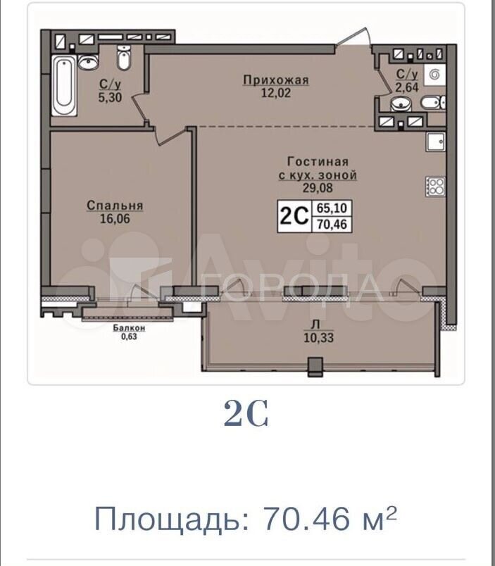 - Общая площадь: 70.5 м2