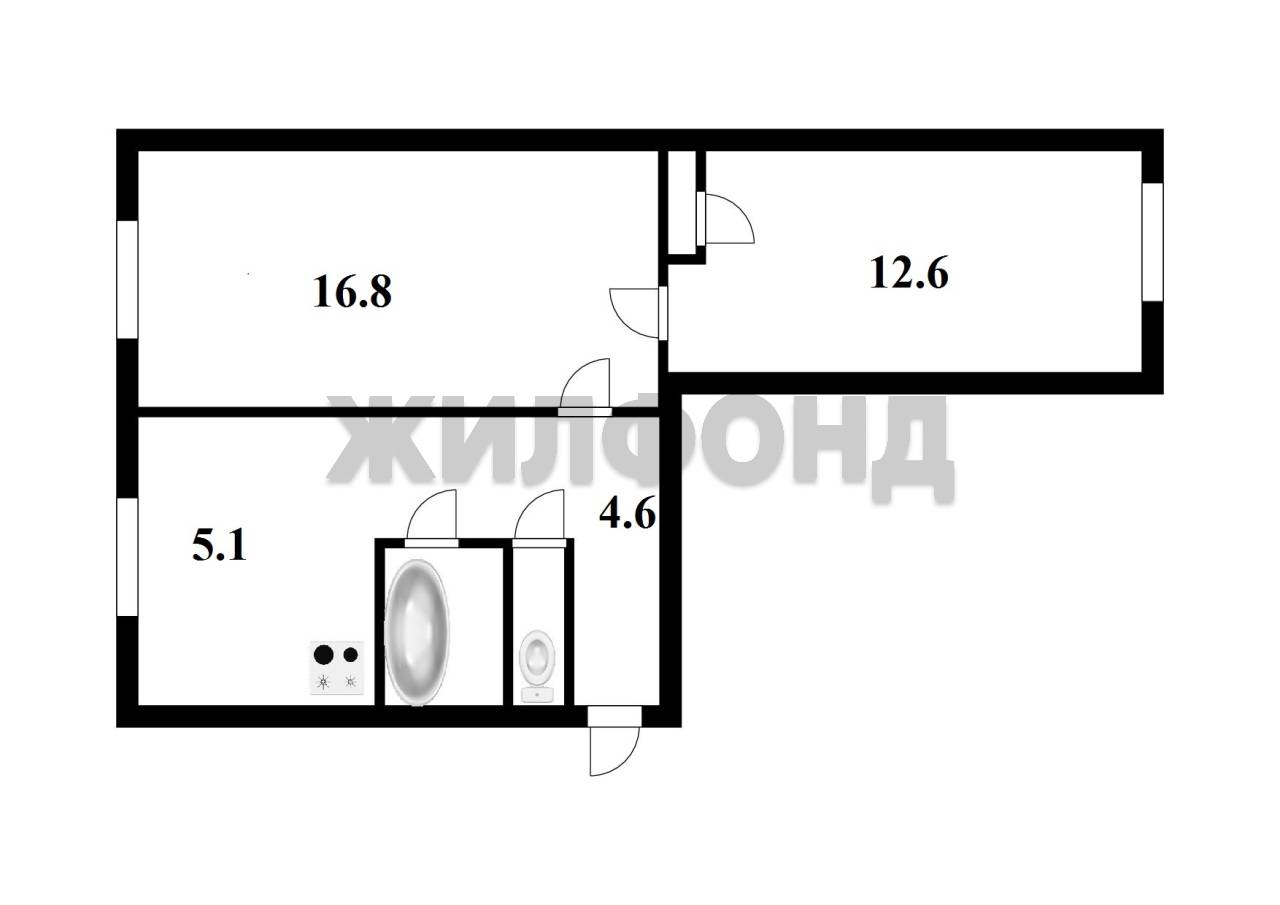 - Общая площадь: 43 м2